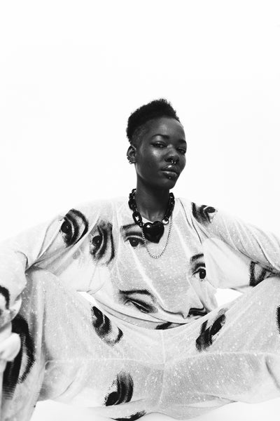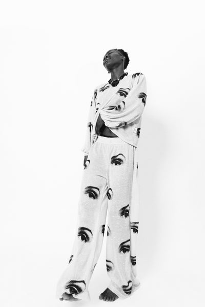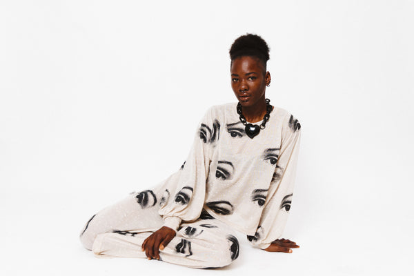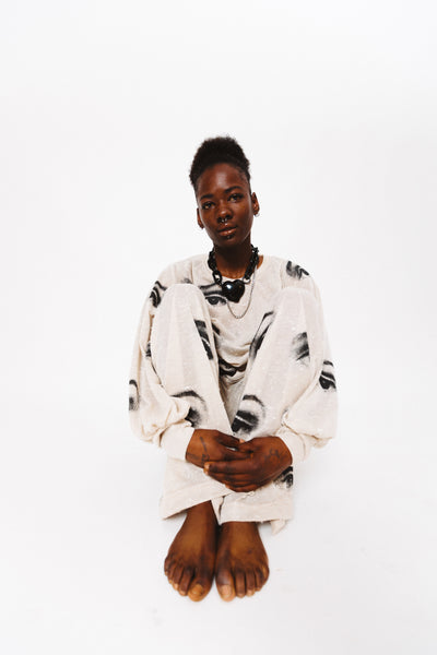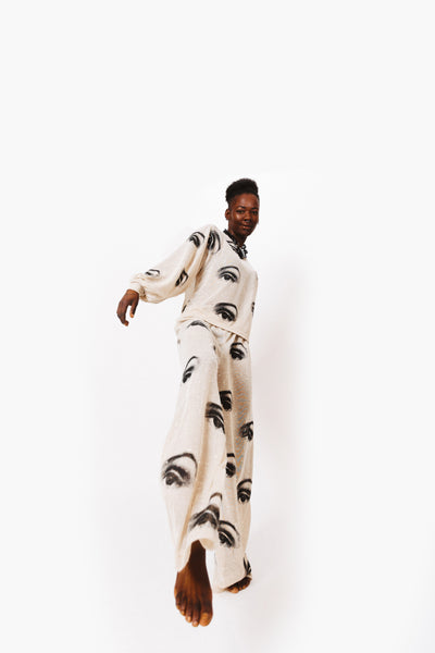 Este maravilloso conjunto está fabricado de un jersey de algodón y poliéster nacional, es una tela muy ligera con cierta translucidez, simplemente un sueño.